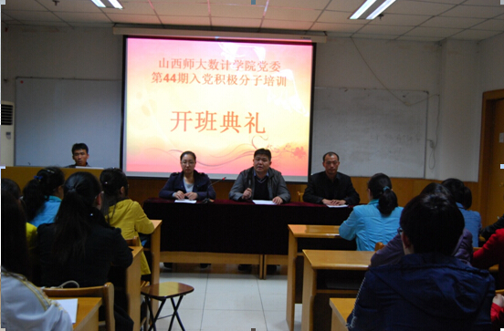 在科学会堂A710举行第44期入党积极分子培训班开班仪式。院党委副书记、学工组组长张珂,院党委委员、团委书记陈立记,院办副主任、学生一支部书记贾静及全体入党积极分子参加了本次开班仪式。仪式由贾静老师主持。