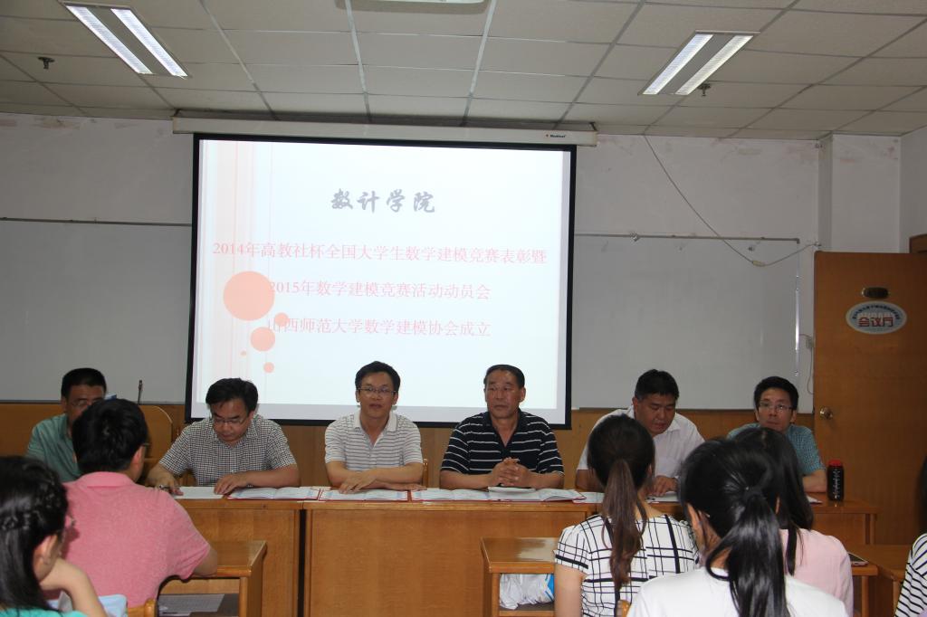 2014年数学建模竞赛表彰暨竞赛动员大会在科学会堂A710举行。院党委书记王成喜,院长史建红,党委副书记张珂,副院长朱红康、安立坚等出席会议,大二大三部分学生参加会议。会议由党委副书记主持。