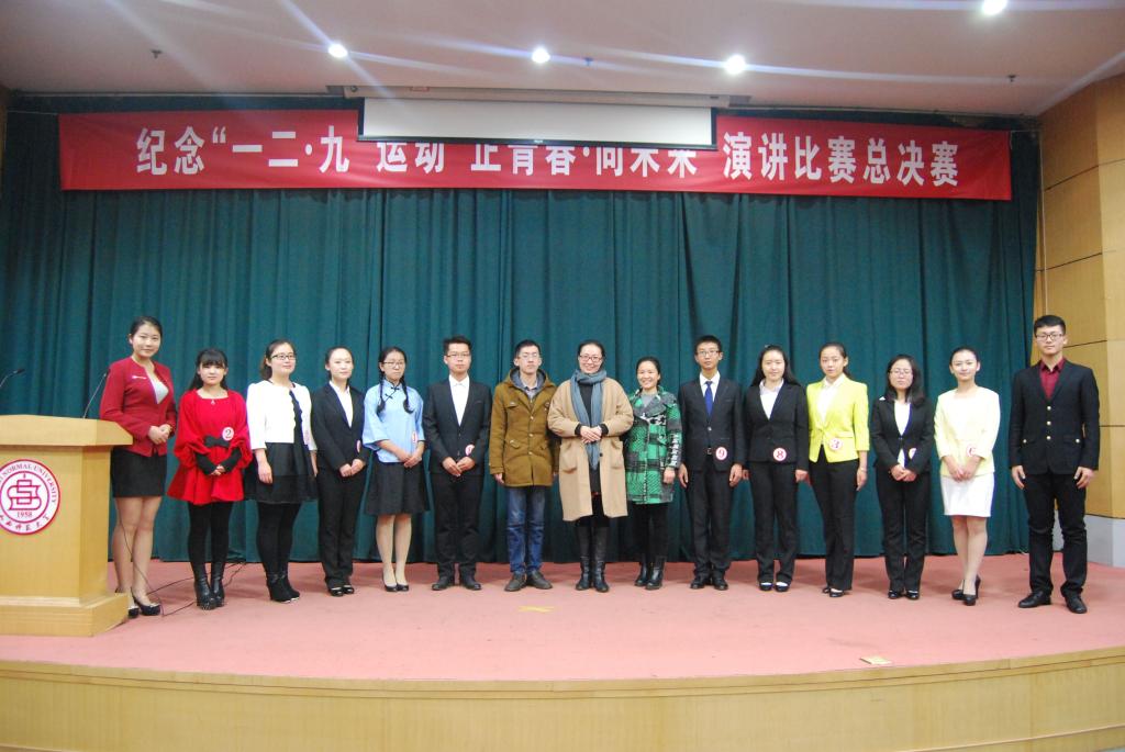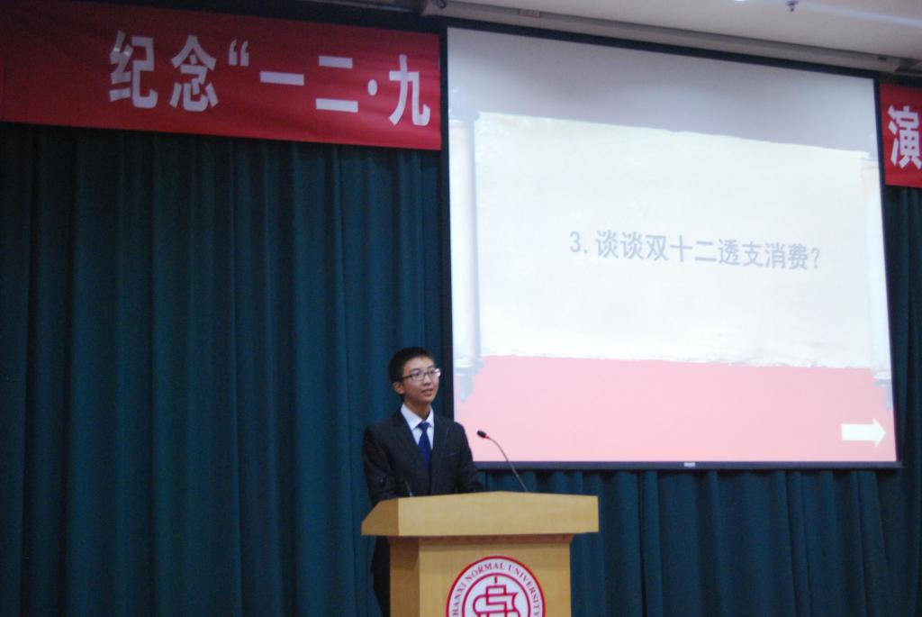 本次决赛以“爱国”为主线,共分为选手诗朗诵,自我介绍,主题演讲,即兴评述四个环节。在诗朗诵和自我介绍环节中,李晟杰以声情并茂的朗诵和巧妙的姓名成语“桃李清风,晟世人杰”自我介绍,博得观众眼球。主题演讲环节中,他以“留守信任,爱国不孤单”为题,通过讲述“黄梨汁不会唱歌”、与评委桌前杯子的互动、引用历史事件吸引评委观众,让大家耳目一新。即兴评述环节,针对“谈谈双十二透支消费”的时事话题,他以幽默的语言与观众互动,带动了全场气氛,并且夺得即兴评述环节第一名。我院选手在比赛中,发音口齿清晰,形象落落大方,表达激情澎湃、慷慨激昂,最后取得总分第三名的好成绩,荣获一等奖。