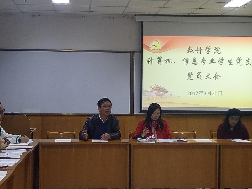计算机、信息专业学生党支部在前一阶段认真筹备、充分调研的基础上,于3月20日晚7时,在科学会堂A710报告厅开展支部专题组织生活会和民主评议党员大会,院党委书记郝红霞,院党委副书记、院长史建红,院党委委员陈立记、杨浩菊以及支部全体党员参加了会议,会议由支部书记陈立记主持。