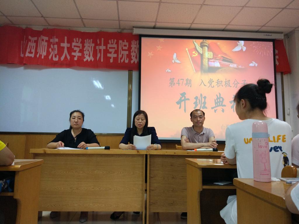 在科学会堂A710报告厅举行第四十七期入党积极分子培训班开班仪式。院党委书记郝红霞、支部书记陈立记、贾静以及84名入党积极分子参加了开班仪式,开班仪式由陈立记老师主持。