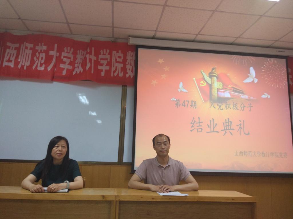 伴随着庄严的《国际歌》,结业典礼拉开序幕。首先,第47期入党积极分子培训班学生代表闫亚民发言,他表示通过此次培训使他进一步明确了人生目标,作为一个合格的入党积极分子,一定要志向高远、德才兼备、勇于开拓,在思想上向党组织靠拢。接下来,陈老师对入党积极分子培训作出总结,777娱乐城