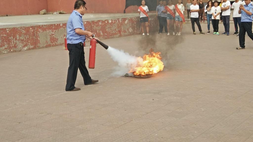 下午4时30分,安全疏散活动结束后,在新松小广场,校保卫处为学生们提供了消防演练器材供学生们进行灭火实践演练。首先张威科长向同学们讲解了消防知识和各式消防器的使用方法、使用对象及其注意事项,并进行了实地点火、实地演练灭火。接着,各班同学积极参与,亲身进行了灭火实践操作。