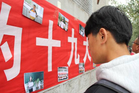 为庆祝十九大的胜利召开,营造学习十九大精神的良好氛围,2017年10月24日,我院师生于篮球场西侧举办了“庆祝十九大 青春心向党”照片展示的活动,力争鼓舞青年学生以最佳的精神状态,投入党的十九大理论学习中。