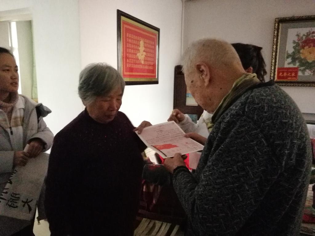组织青年志愿者前往中国人民解放军临汾军区干休所功臣小区看望抗战老兵。年过90岁的老兵与90后的志愿者们一起重温革命故事,共同学习十九大精神,展开了一次“双90”的特殊对话。