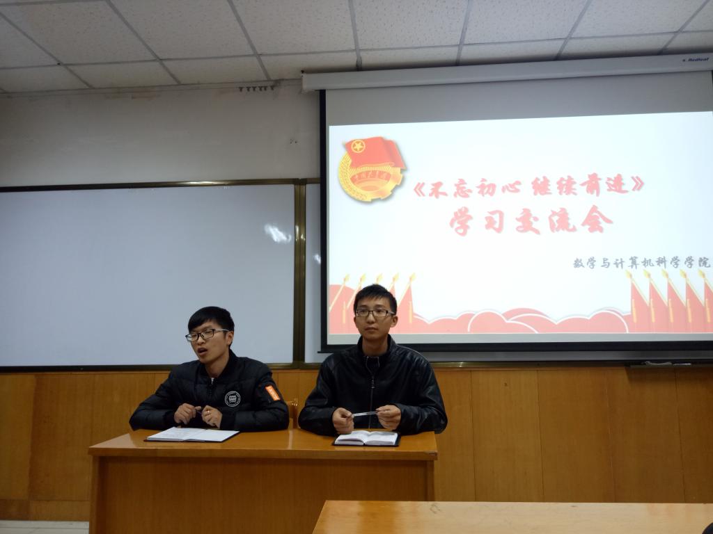 团委“不忘初心,继续前进”主题学习交流会在科学会堂A710报告厅举行。院团委副书记武玉恩、学生会副主席李晟杰主持会议,团委学生会全体成员参加。