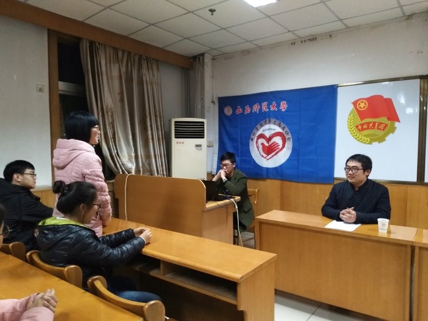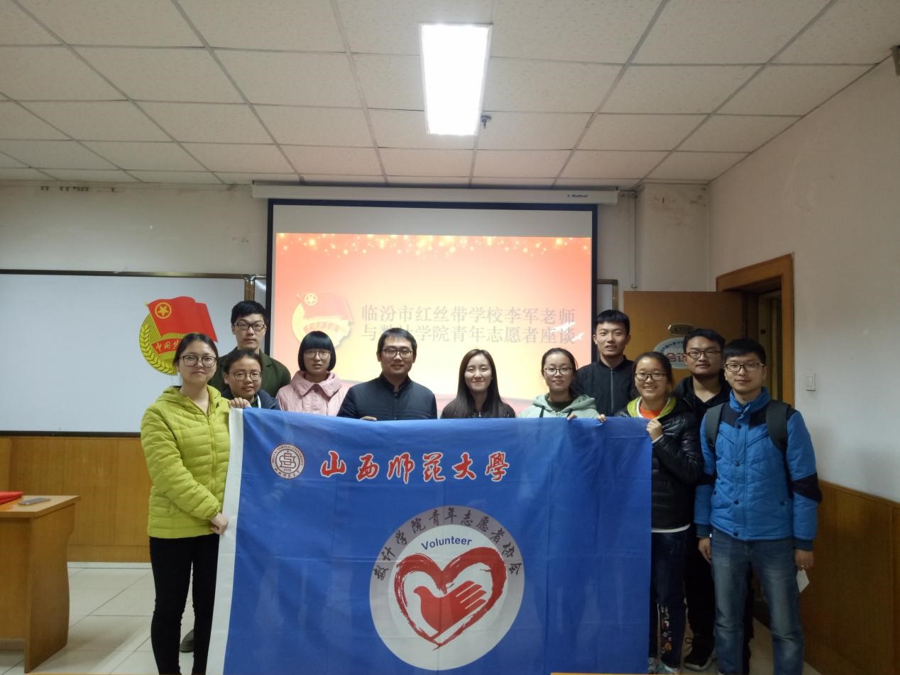 在科学会堂A710报告厅举行青年志愿者座谈会。座谈会邀请临汾市红丝带学校李军老师与我院青年志愿者座谈交流。我院党委副书记杨亚东、团委副书记张笑迷出席本次座谈会。