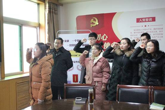 新党员在科学会堂A705会议室举行宣誓仪式。院党委副书记杨亚东,团委副书记、学生第二支部书记张笑迷和新转正党员参加仪式。仪式由张笑迷主持。
