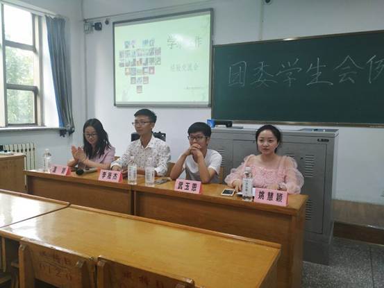 姚慧颖通过分享自己考取陕西师范大学的经验,建议同学们制定可行的学习计划,以高质量的学习来促进高效率的工作。武玉恩重点指出了学生会这一平台对个人成长潜移默化的作用,鼓励同学们充分利用学生会资源,增强全局意识和责任意识,端正态度,求真务实,大步向前。李晟杰通过讲述自己大学四年中经历过的困境与挑战,希望同学们要具备独自经历坎坷和面对磨难的勇气,坚定信念,以最佳的状态最饱满的激情兼顾工作与学习。温颖主要围绕自己的考研动机、动力进行了经验分享,鼓励同学们要以一名优秀学生干部的标准要严格要求自己,树立考研决心,不断突破自我。
