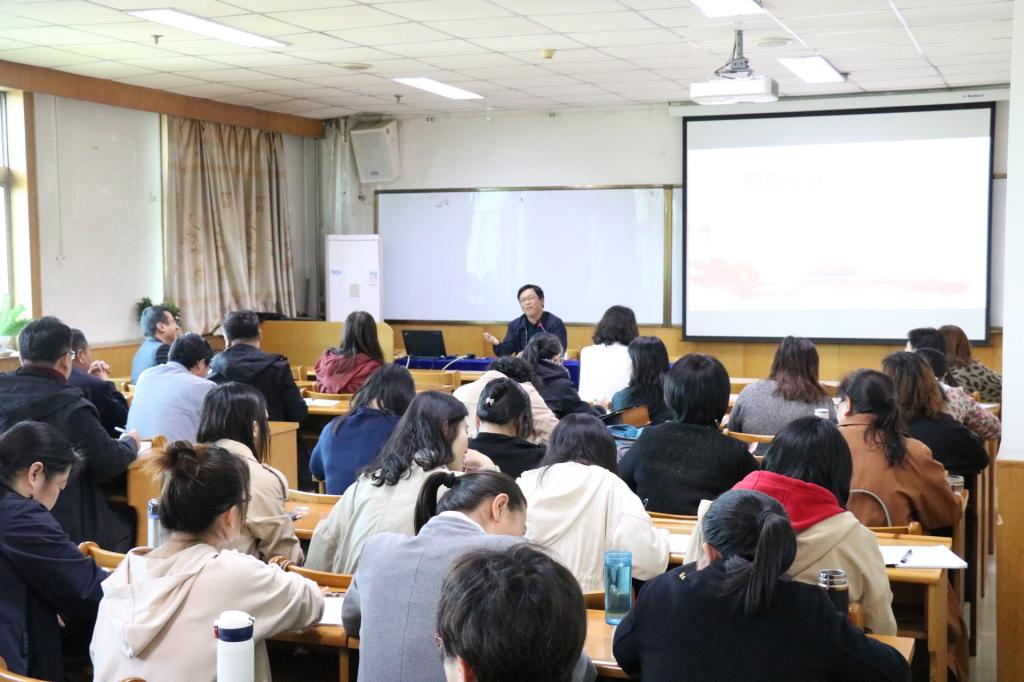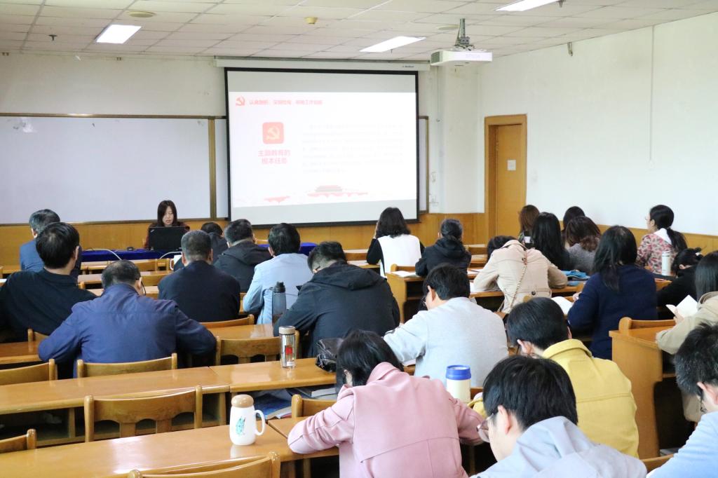 党委书记郝红霞、院长史建红在科学会堂A711报告厅讲“不忘初心、牢记使命”主题教育专题党课。全院教师党员参加党课学习。