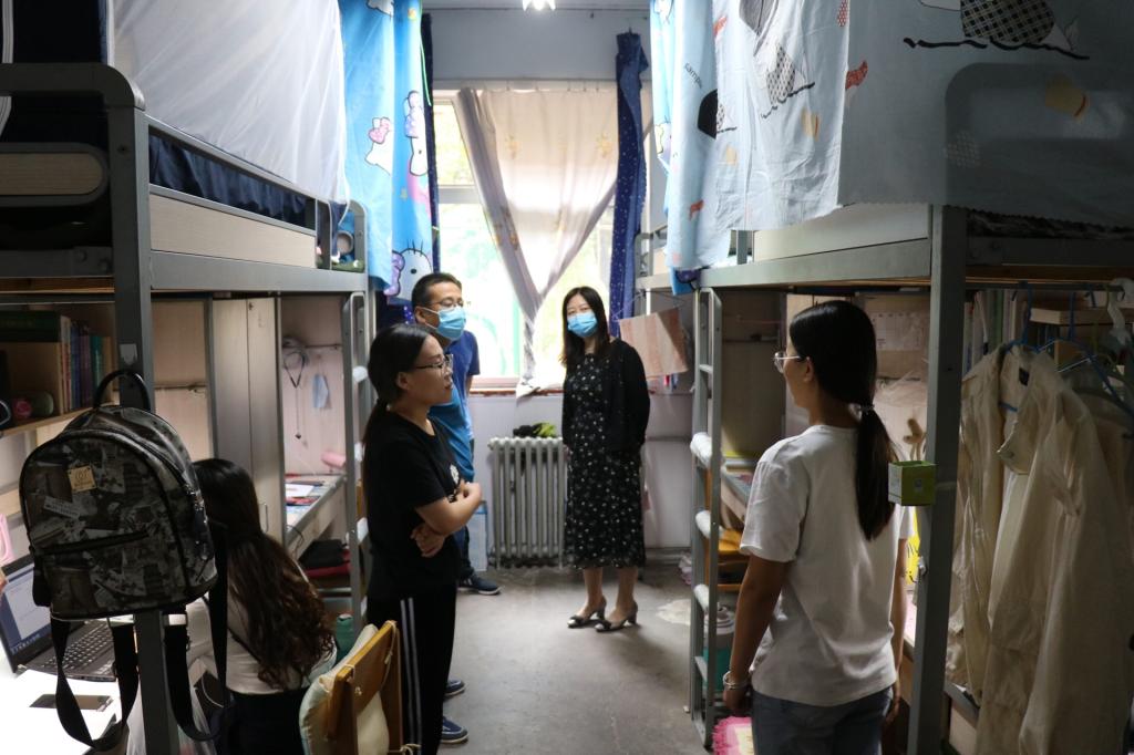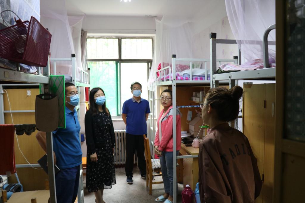 6月17日下午,我院党委书记郝红霞、党委副书记杨亚东、副院长安立坚一行深入宿舍,与学生亲切交流,了解学生返校后的思想和心理动态,排查宿舍安全隐患,积极回应学生关切,切实做好疫情防控常态化工作和“安全生产月”专项检查工作。