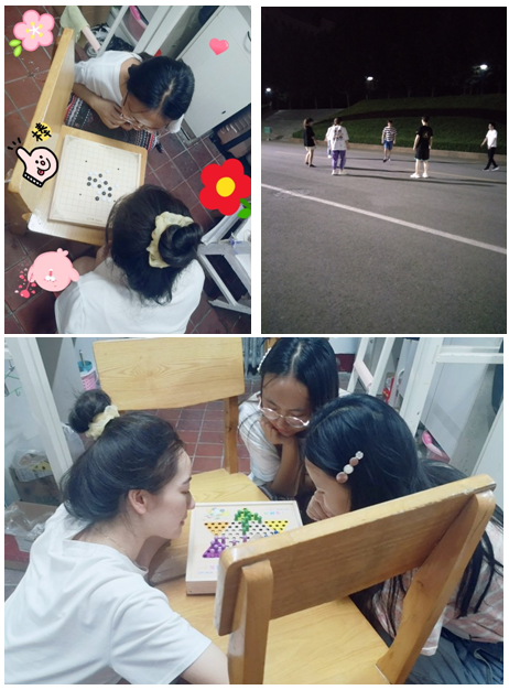 购买了趣味活动器材,鼓励同学们在课余闲暇时间积极参与益智健体活动。忙碌学习一整天后,在黄昏时分集体活动锻炼,成为同学们一天中最惬意的时光。同学们根据兴趣打羽毛球、跳跳绳、下五子棋,通过轻松有趣的每日活动缓解学习压力、放松身心,增进友谊。