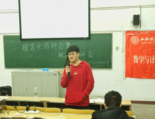 为进一步规范学生宿舍管理,营造安全、舒适、和谐的宿舍文化氛围,帮助新生树立维权意识,提高维权能力。11月7日晚7时,我院在05102举办了宿舍长培训暨权益宣讲会。2019级优秀宿舍长、2020级部分班委、2020级全体宿舍长参加,会议由生活权益部组织开展。