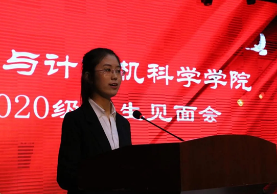1801班耿瑶作为高年级学生代表进行发言。她分享了自己的学习心得,鼓励学弟学妹们发现专业学习的乐趣,在学习中要“建立信心、注重思考、善于总结、敢于提问、互帮互助”,积极参与各项活动提高综合素质。2001班张友代表全体新生承诺,表示在未来的大学生活中将会打牢专业功底、积蓄前进能量,勇于探索,努力拼搏,用行动和成绩回报学校和父母的培育。