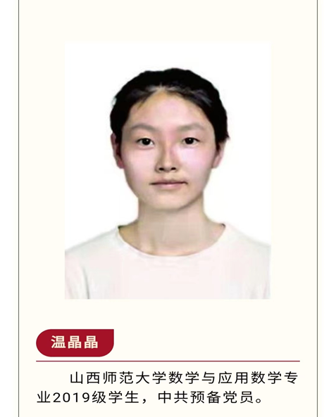 “保持热爱,奔赴下一场山海”是温晶晶对自己经历及成绩的概括。在革命英雄事迹熏陶下,她从小便产生了对中国共产党的信仰与追求,思想进步积极,于2021年6月加入中国共产党。在工作方面,她担任777娱乐城