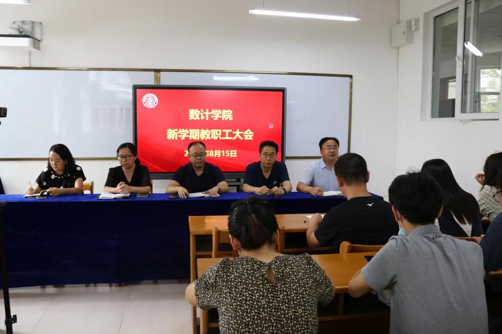 8月15日下午,我院于北区4号教学楼208会议室召开全体教职工会议,线上线下同步进行。院党委书记孙学虎主持会议,全体教职工参加会议。