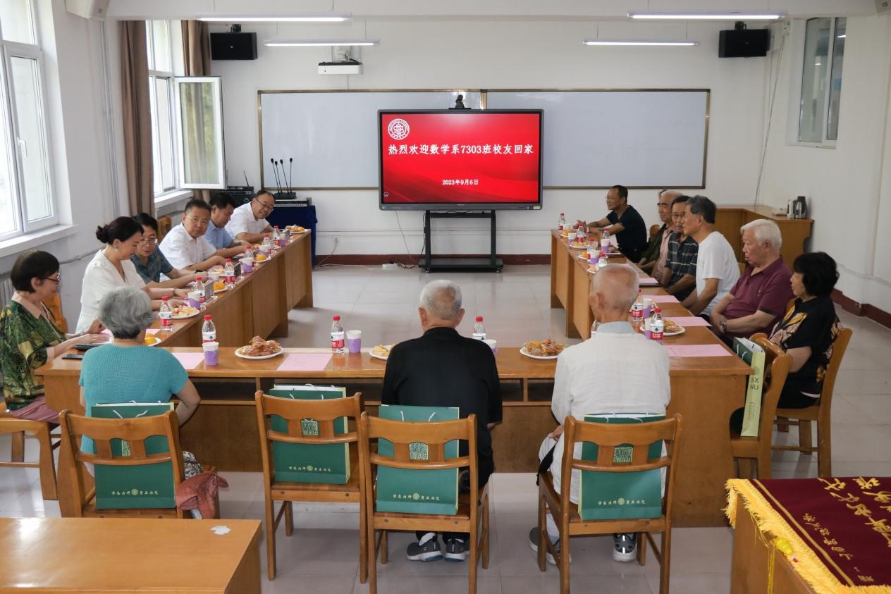 9月6日,我校数学系7303班十余名校友在入学50周年之际重返母校,在北区4号教学楼208报告厅举行了交流会,副校长王云、校友办公室主任陈向波、院党委书记孙学虎、院长安立坚、副院长王洁出席了会议。