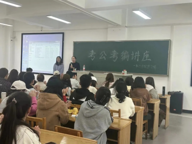 10月21日上午10时,我院于信息楼116教室成功举办考公考编讲座活动,本次讲座由张丹老师主讲,院党委副书记吴晓坤老师、张晋华老师出席,学生代表参加。
