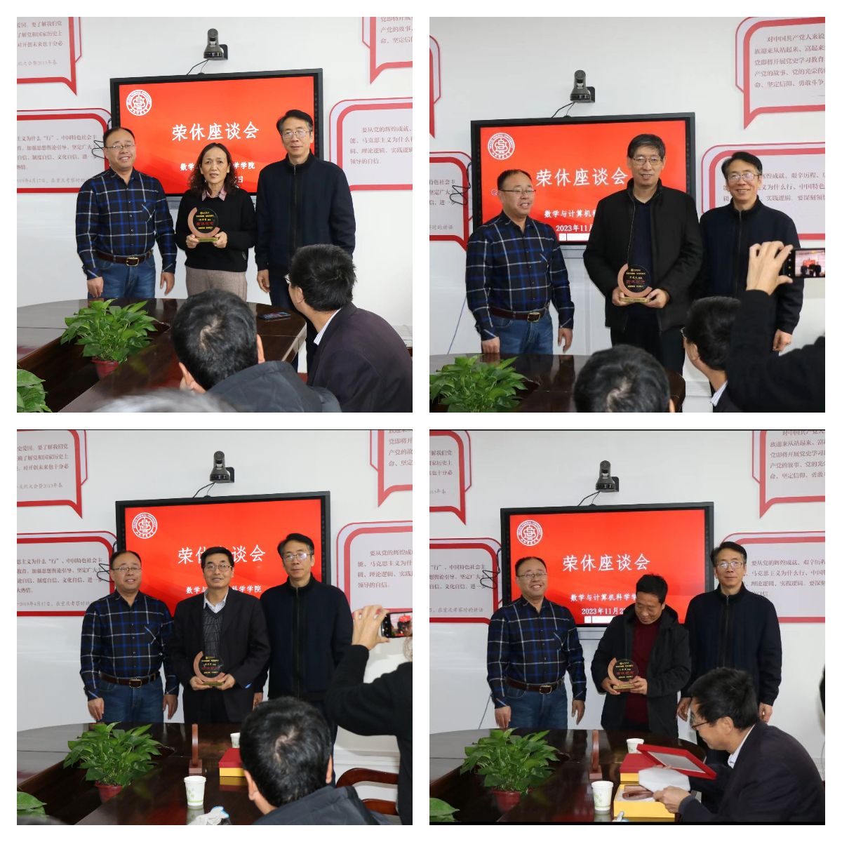 原院长、晋中师范高等专科学校校长史建红与我院院长安立坚对四位荣休教师在777娱乐城