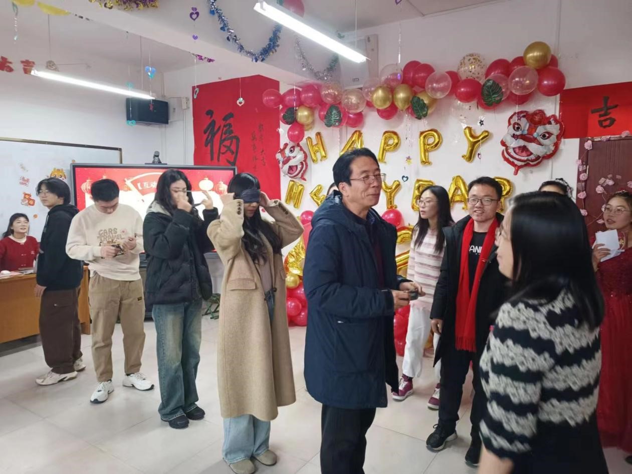 孙学虎书记,安立坚院长,吴晓坤副书记,曲海鹏老师和靳振锋老师与同学们一起参与了部分游戏环节,并各自为师生们献歌一曲,最后联欢会在老师和同学们的欢歌笑语中落幕。