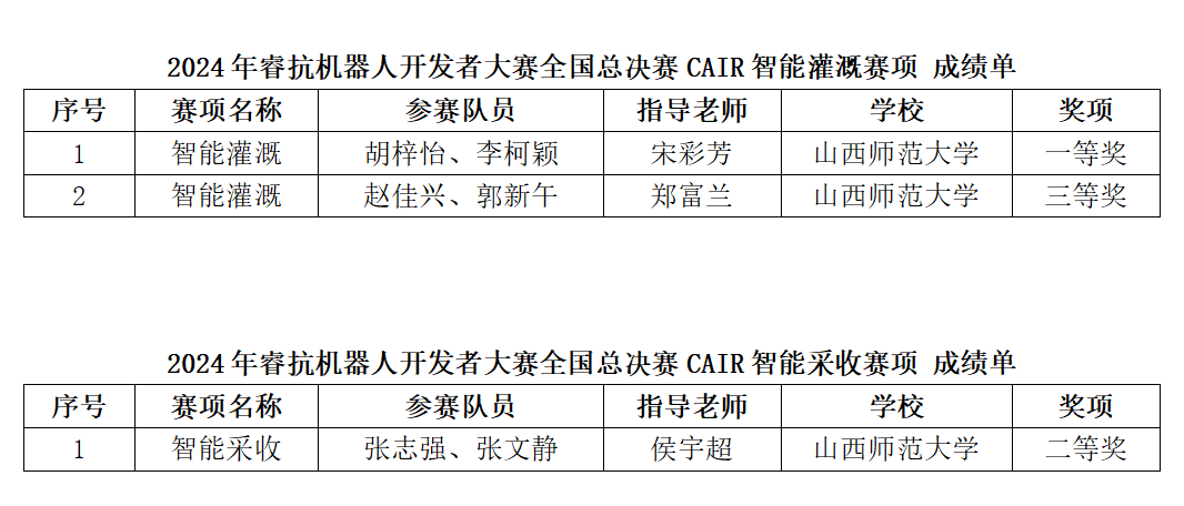 8月20日,2024睿抗机器人开发者大赛全国总决赛第二阶段在杭州举行。8月23日,比赛结果出炉,机器人与人工智能社团成员分别在智能灌溉和智能采收项目中荣获一等奖1项、三等奖1项和二等奖1项。