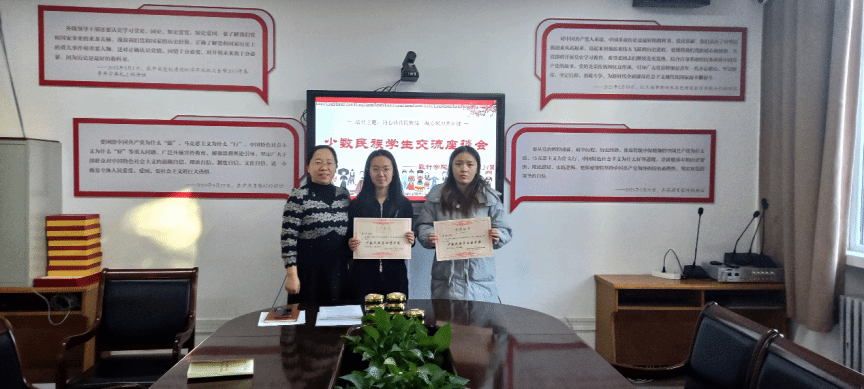 接着,吴书记为李悦、丹婷两位同学颁发学业进步奖,以表彰她们在学业上的卓越表现和不懈努力;为所有少数民族同学发放新年小礼品,祝愿同学们在新的一年里收获知识、收获成长。