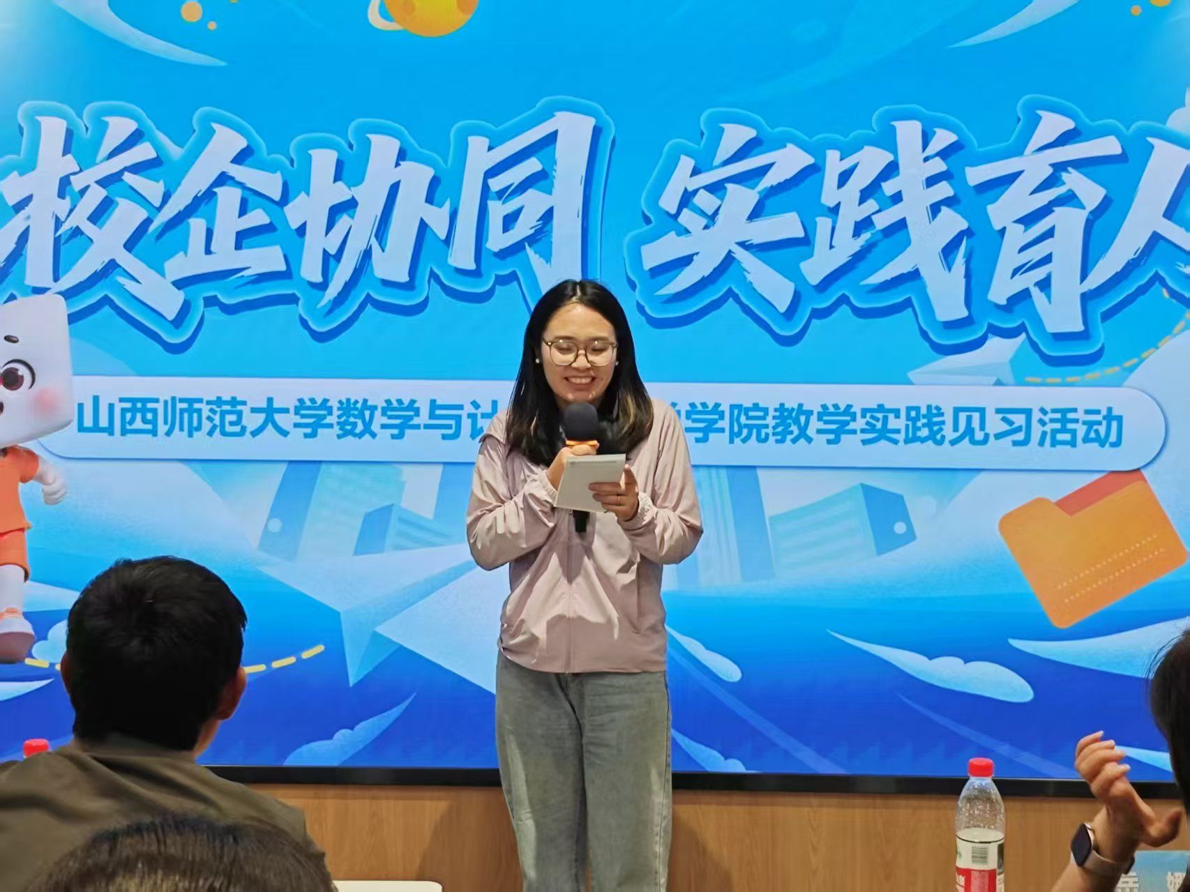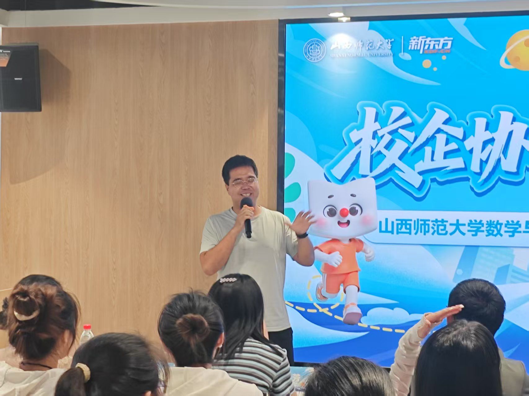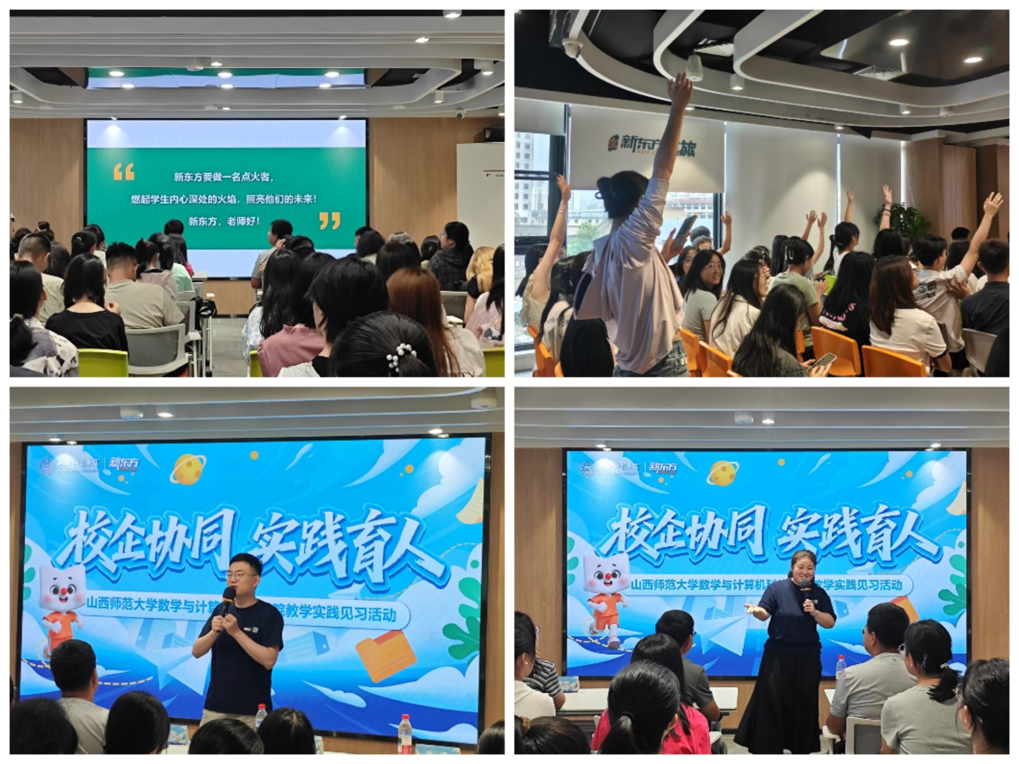 校企开放日”活动。数学与应用数学专业系主任侯东东老师、公共数学教研室主任兼本科师范生实习工作负责人王栋老师、辅导员杨瑞芳老师、辅导员郝雅娴老师及实习指导教师肖苏平共同带队出席。太原新东方人力资源部总监杨鑫、人力资源部招聘经理岳娜等代表企业方予以热情接待。