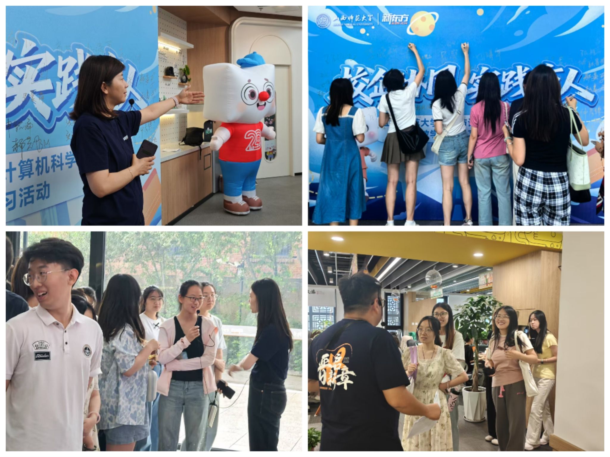 随后,大家沉浸式体验了新东方的特色课堂,亲身感受其独特的教学魅力和科技赋能教育的实践成果。探访过程中, 我院学子展现出高度的求知热情与青春活力,对工作环境细节、岗位职责及日常流程兴趣浓厚,频频与带队老师互动提问。新东方工作人员热情详尽地一一解答,现场交流气氛活跃。