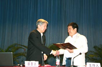 副校长卫建国教授为杨乐院士颁发荣誉教授证书
