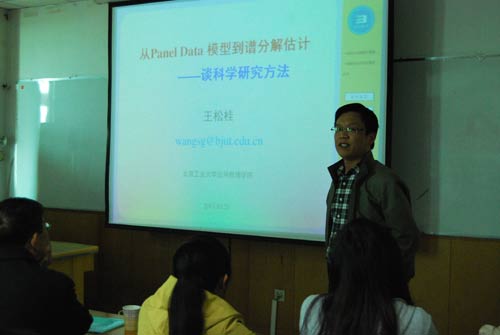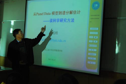 邀请,北京工业大学王松桂教授在科学会堂A710报告厅作了题为《从Panel Data模型到谱分解估计——谈科学研究方法》的学术报告。报告会由777娱乐城