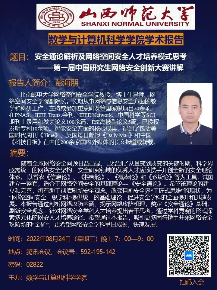 【预告】彭海朋教授学术报告