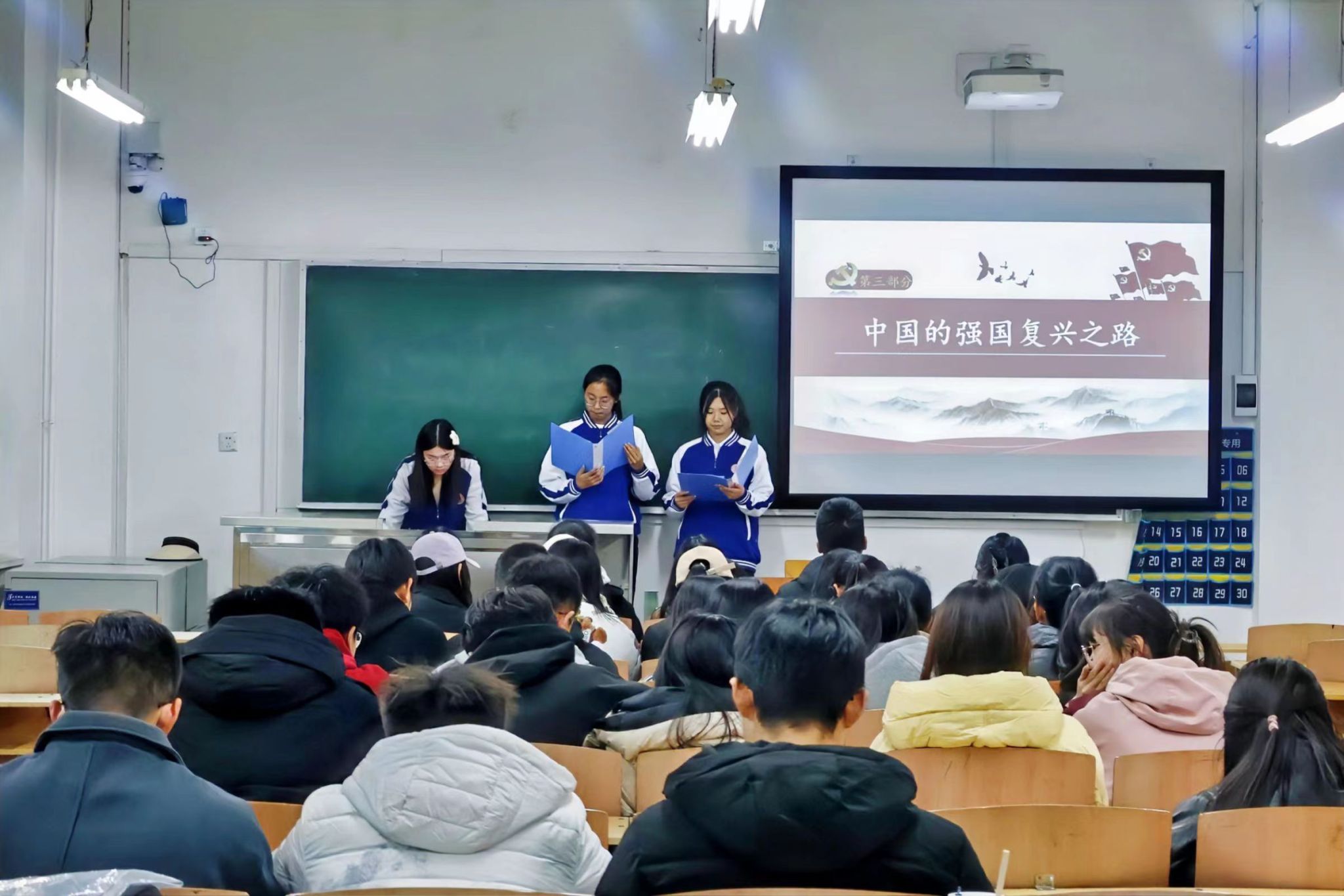学生介绍了我国历史、文化、科技等方面的发展历程和成就,同时强调了青年作为祖国未来的主人,应该肩负起民族复兴的重任,积极投身到祖国的建设中去。并告诉我们在新时代历史背景下要如何参与到强国进程中。