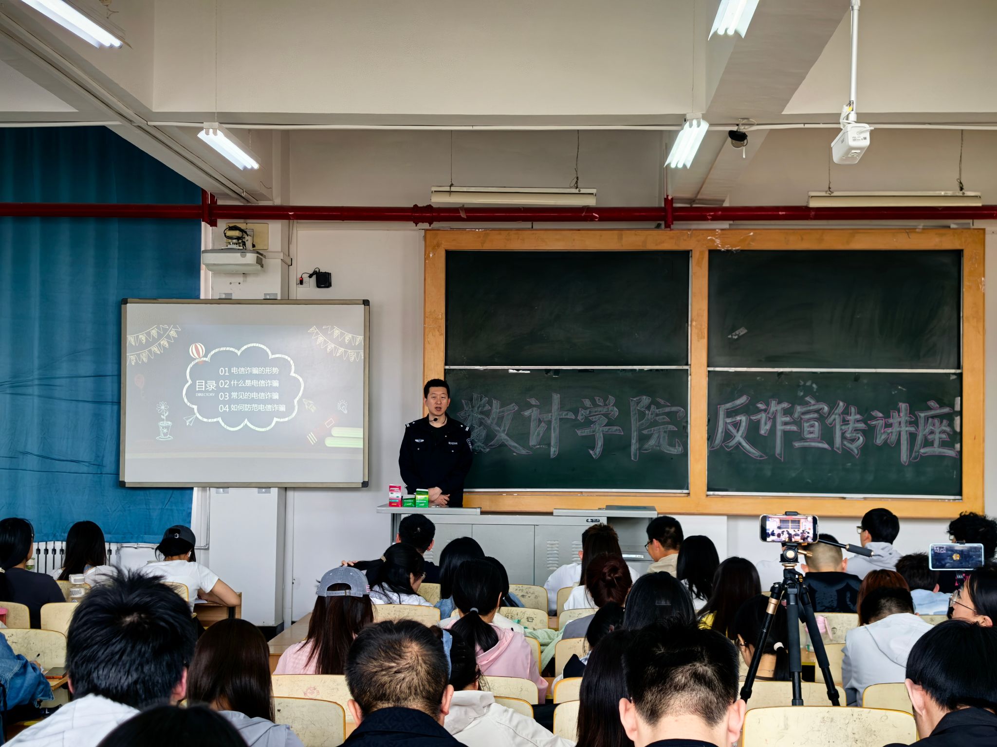 为提高同学们的反诈防骗意识,由初心社区主办、我院承办的“提高反诈意识,守护校园净土”反诈宣传讲座,于4月22日下午在南区5409教室成功举办。本次讲座邀请了太原市公安局直属分局文保大队高校中队副中队长裴中瑞警官为同学们分享电信诈骗防范的知识与技巧。讲座采用线上线下相结合模式,并全程录制存档,确保未能及时参会的班级回溯学习。