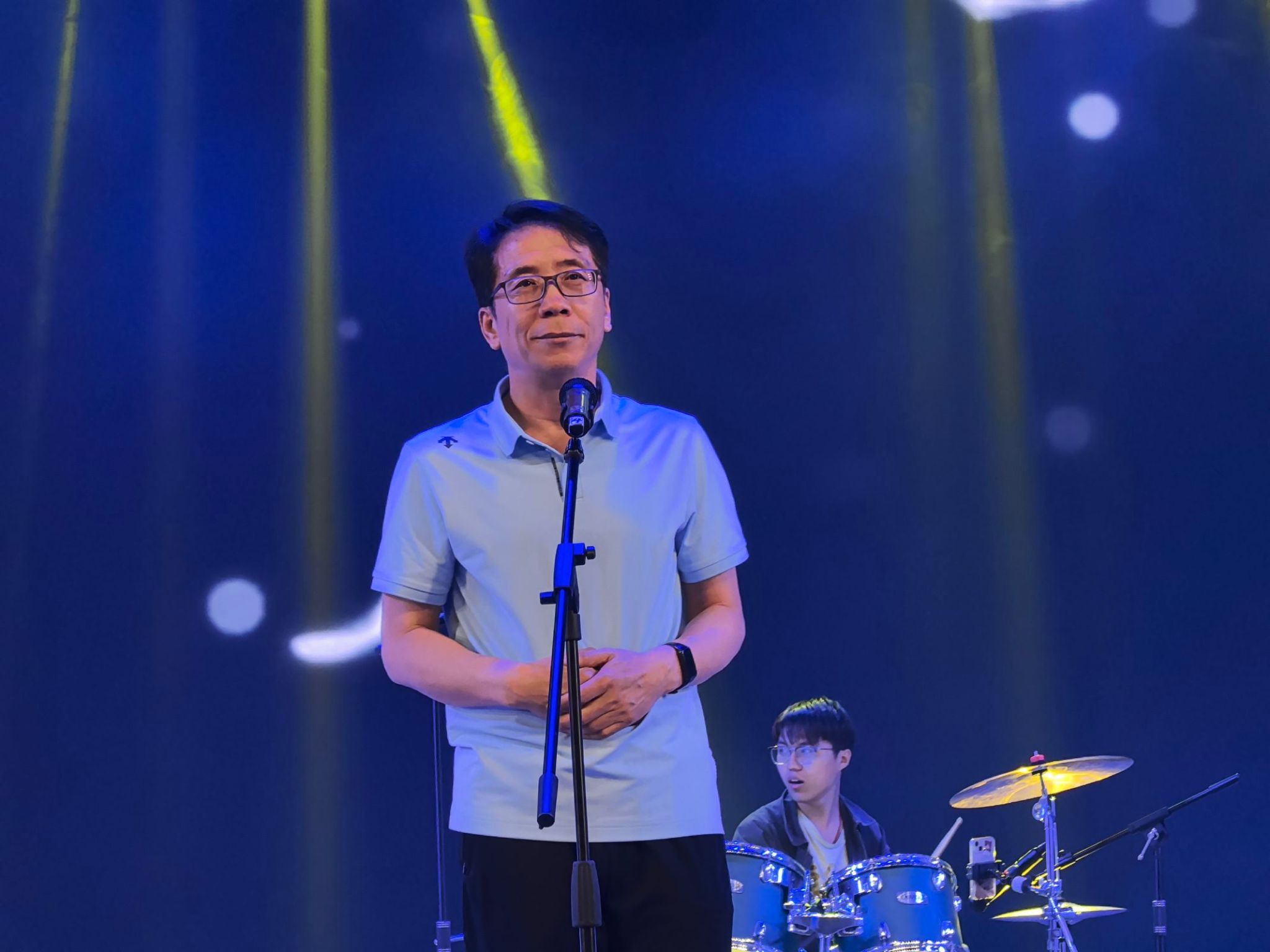 张佳辉同学带来的竹笛独奏《上》带领大家步入清新雅致之境;哑春乐队的节目《春风十里》带动了全场的热情;安立坚院长带来的经典歌曲《海阔天空》则直接将晚会推入高潮,现场掌声和欢呼声此起彼伏。